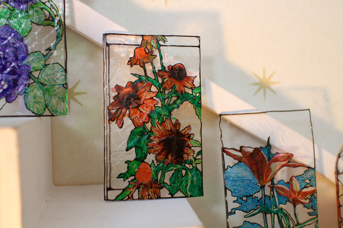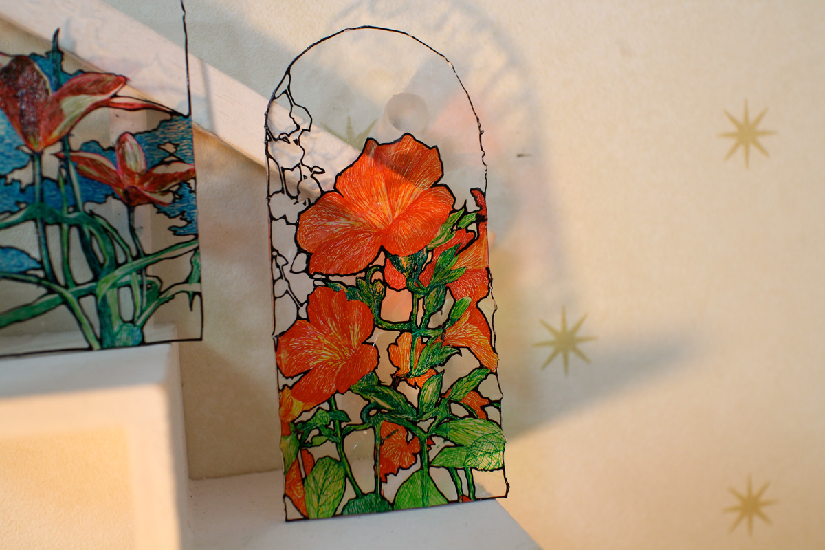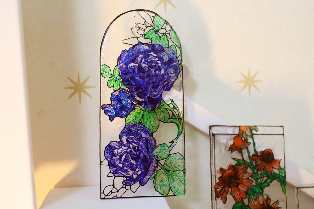 ミニチュアステンドグラスができました。 2013年10月11日 立体作品 ミニチュアステンドグラスを作りました。 庭に咲いている花をモチーフにしています。 表面はガラスの質を表現するため凸凹をつけたりしています。 ミニチュアステンドグラスは11月3日のデザインフェスタに持っていきます。 東京ビックサイト 1F ブースNO.F-237 hachiと合同で出展致します。 ぜひお立ち寄り下さい。