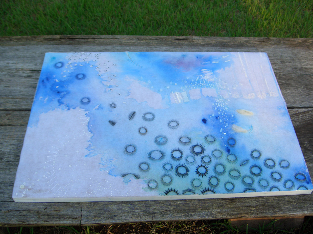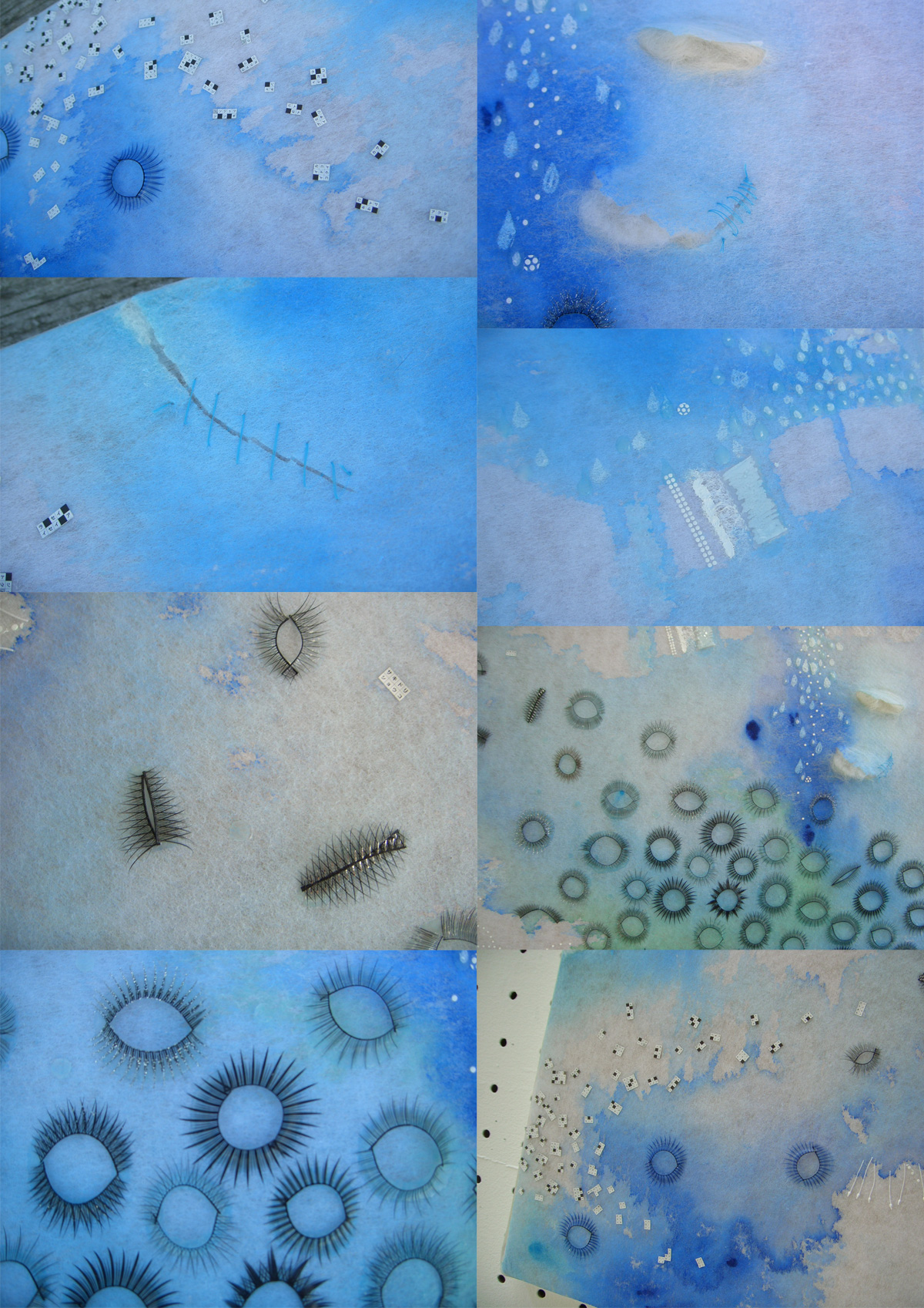 画材は主に水彩絵の具です、あとはつけまつげや綿、糸など