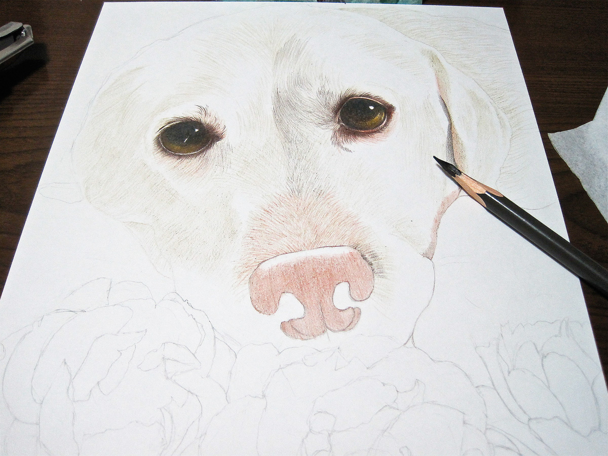 まずFくらいの鉛筆で下描きをして…次に色鉛筆でデッサンしていきます。(色を塗る方が好きです。)