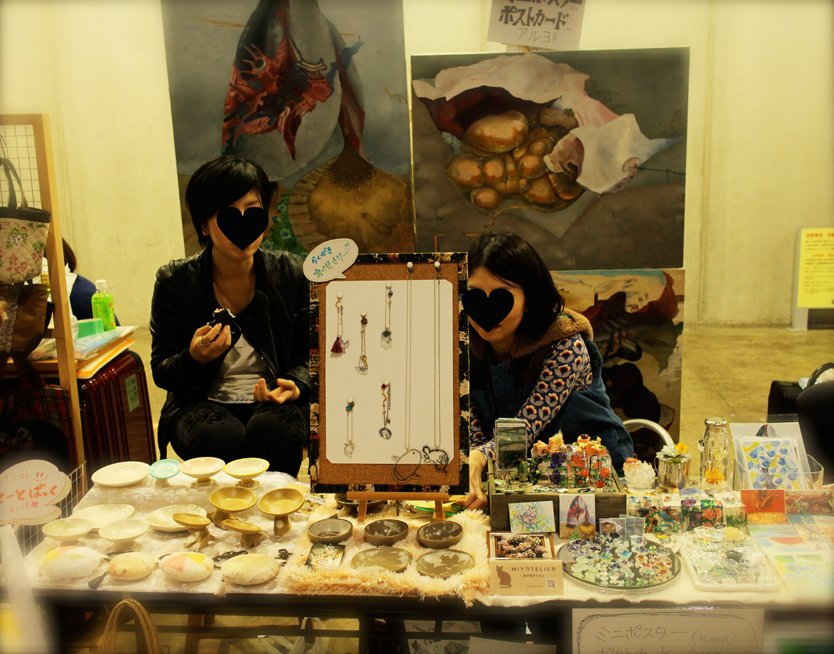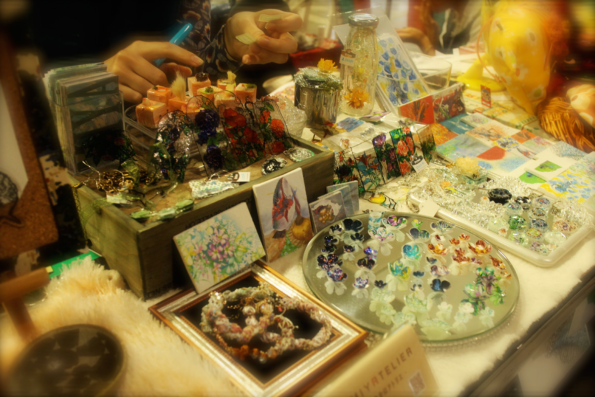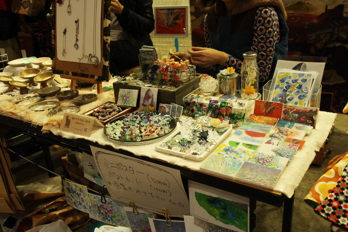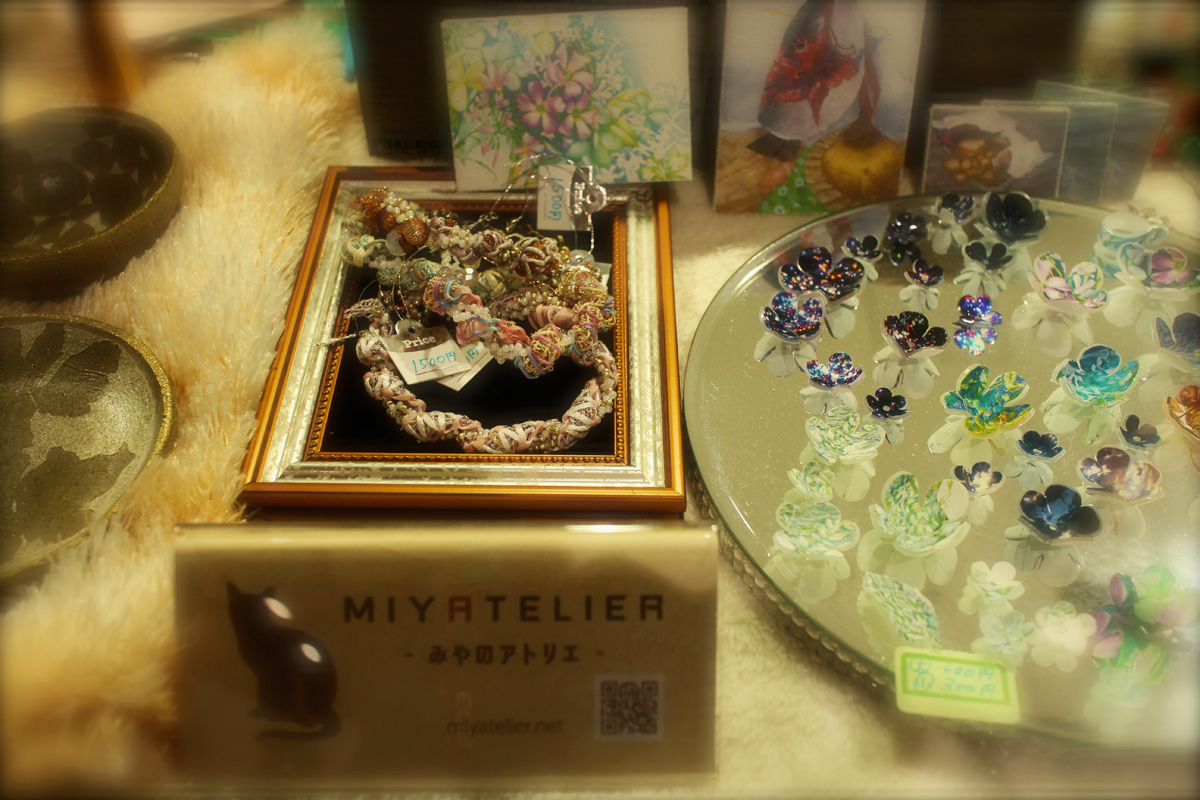 小物も展示、販売しましたが…大きな目的は絵画に興味を持ってもらいお客様に名刺を渡すことでした。