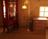写真を見てから気づいたのですが…キャビネットが上下さかさまでした…(なぜかあんまり気にならないと思います。) 前回ドールハウスのカドーで購入した飾り棚もセットします。 ライトの光がガラスに反射するのって綺麗ですよね?(綺麗だなと思い撮影しました。) この角度だとスタンドライ ...