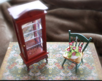 三郷にあるドールハウスのお店「カドー」に行ってきました、写真の家具とお花は購入したものです。 左の飾り棚は1300円、椅子は900円です。 すごく丁寧に作ってあるのに低価格で驚きました。 しかも閉開もスムーズ。 背面はミラーになっていて宝石箱にもなってくれそうです。 椅子は ...